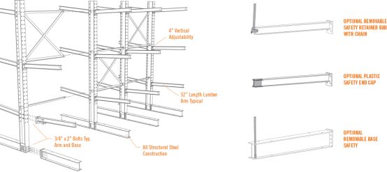 · Adjustability – Bolted connections allow for easy adjustment of arms to accommodate a wide variety of load heights