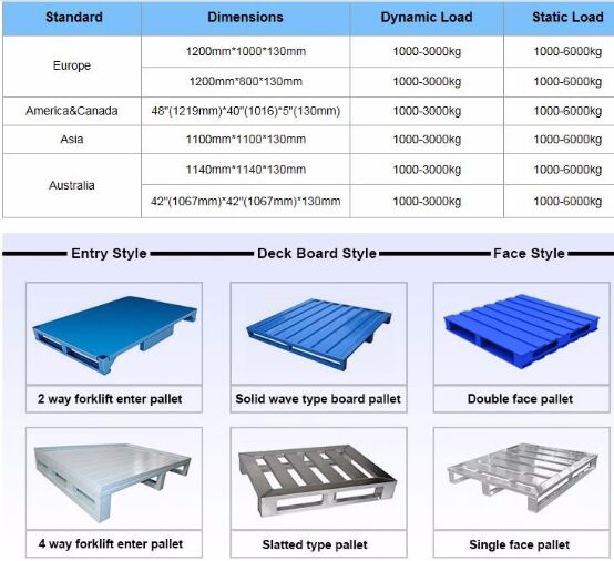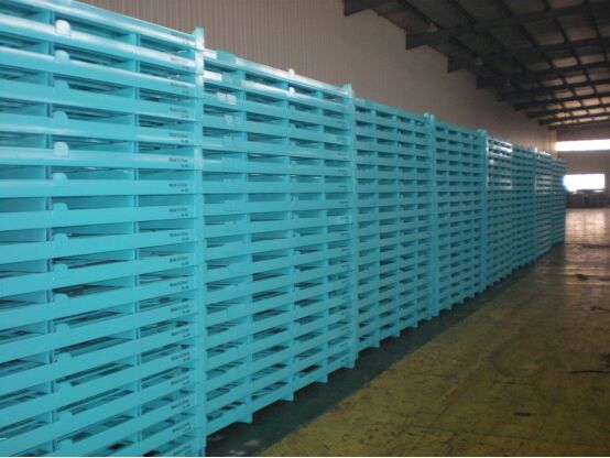 Steel pallet is widely used in many industries. Due to its durable character, it gradually takes away wooden pallet and plastic pallet market place. Nowadays Steel / Metal pallet is often used with racking system. Galvanized Steel pallet has advantage in cold warehouse. Powder painted steel pallet has many colors for your option. Customers can book any color they want and like. Steel pallet makes it easier to move heavy stacks